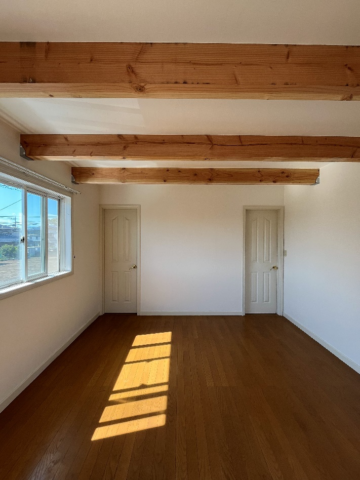 天井をつくるために増設した、梁を見せてアクセントにしました。