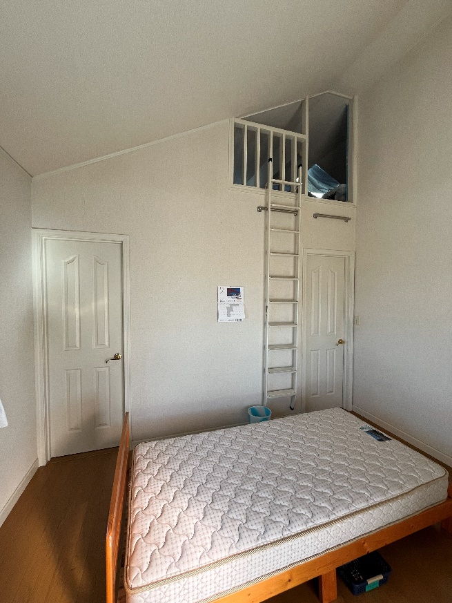 写真右上にある天井の扉を開けるとハシゴが下りてきて、既存の小屋裏部屋に行けるようになっています。