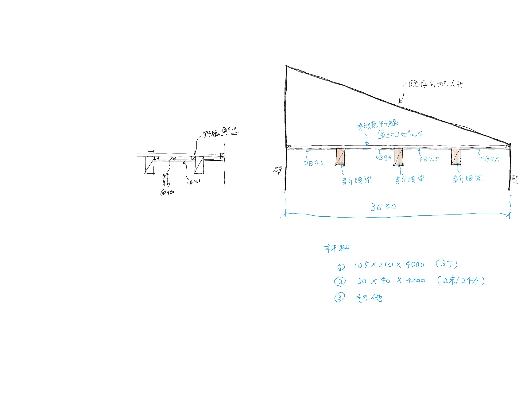 *打ち合わせで使用した簡易的な資料で天井の作り方のイメージです。