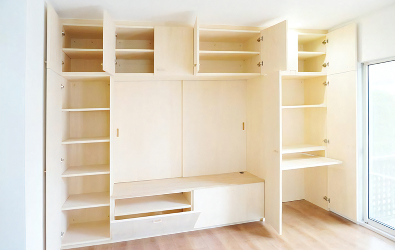 ハウスメーカーに長年勤めていたので、建築の知識はありました。しかし、いくら考えても現状では解決できず私の収納の悩みはリノベーションと造作家具の組み合わせしかないと思いました。リビングにはテレビとその周辺機器そしてパソコンやプリンターなど、テレビ以外は見せないシステムボードを考えてもらいました。機能的でスッキリしたリビングになりました!