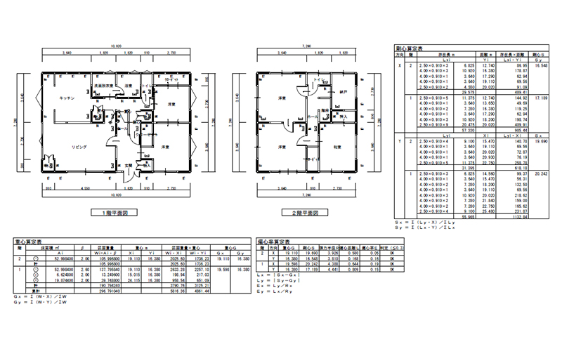 計画した耐力壁の量とバランスを4分割法で確認します。